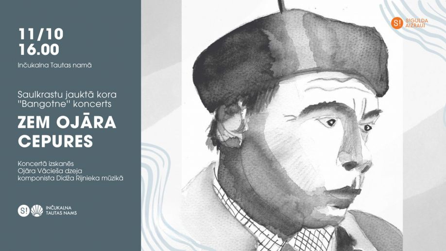 11.oktobrī plkst.16.00 Inčukalna Tautas namā notiks Saulkrastu jauktā kora "Bangotne" koncerts “Zem Ojāra cepures”. Koncertā izskanēs Ojāra Vācieša dzeja komponista Didža Rijnieka mūzikā. Dirigentes: Iveta Rīsmane-Lūse un Inguna Rijniece.