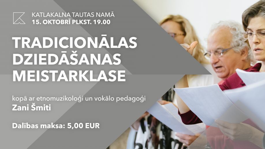 15.oktobrī plkst.19.00 Katlakalna Tautas nama Tradīciju mājā notiks tradicionālās dziedāšanas meistarklase kopā ar etnomuzikoloģi un vokālo pedagoģi Zani Šmiti.