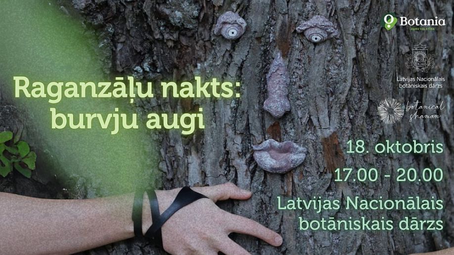 18.oktobrī no 17.00 līdz 20.00 Latvijas Nacionālais botāniskais dārzs Salaspilī aicina uz augu burvestību pilnu pasākumu “Raganzāļu nakts: burvju augi”. Apmeklētājus sagaida: subtropu nakts burvība oranžērijā, sajūtot augu enerģijas; tikšanās un naksnīga pastaiga pa Dārzu lāpu gaismās kopā ar koku burvestību zinātāju Andreju Svilānu; radošā darbnīca “Burvju amuleti: kožu nāve” kopā ar dabas rokdarbu pratēju Veroniku Šlapakovu; buramvārdu un mīklainu uzdevumu pilns izglītības centrs “Botania”.