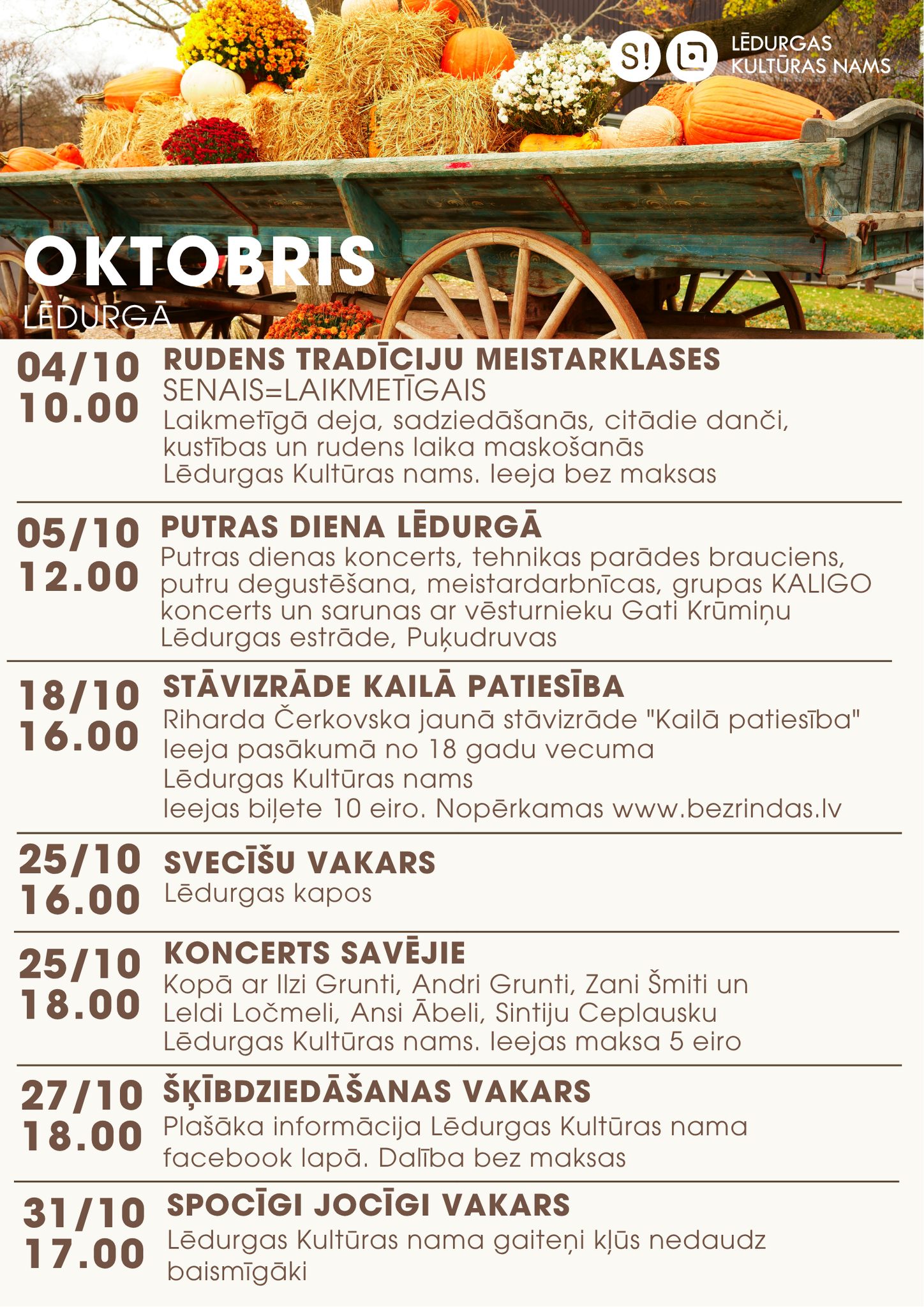 27.oktobrī no plkst.18.00 Lēdurgas Kultūras namā notiks Šķībdziedāšanās vakars, kurā būs iespēja izdziedāt senas un ne tik senas mīļas dziesmas. Dalība bez maksas.