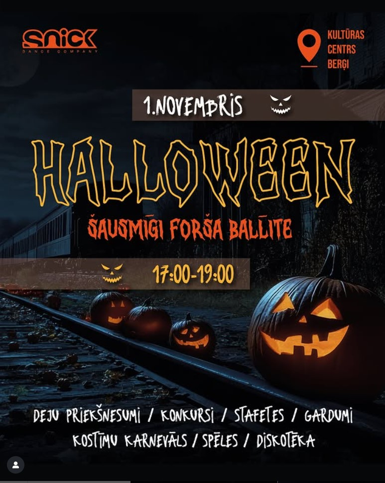 1.novembrī no plkst.17.00 līdz 19.00 kultūras centrā "Berģi" notiks Halovīna ballīte. Būs mazo monstru deju priekšnesumi, konkursi, stafetes, gardumi, spēles un diskotēka! Visi tiek gaidīti šausmu tērpos, radošās maskās un ar labu noskaņojumu!