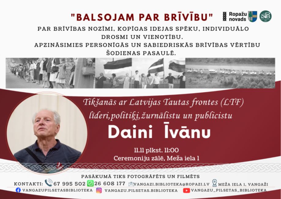 11.novembrī plkst.11.00 Vangažu pilsētas pārvaldē notiks tikšanās ar Latvijas Tautas frontes līderi, žurnālistu, politiķi un publicistu Daini Īvānu.