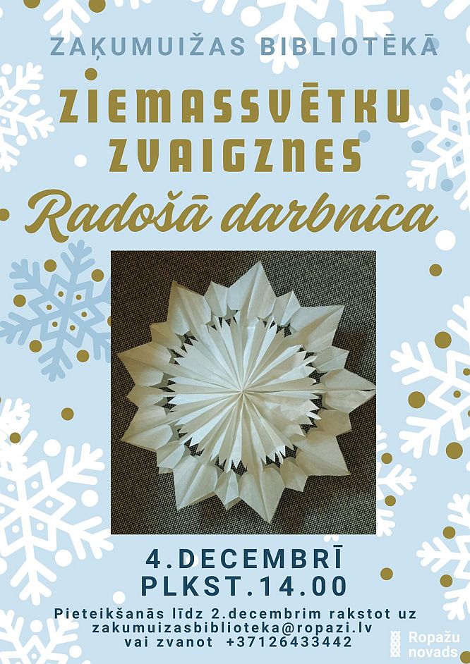 4.decembrī plkst.14.00 Zaķumuižas bibliotēka aicina uz radoo darbnīcu "Ziemassvētku zvaigznes"