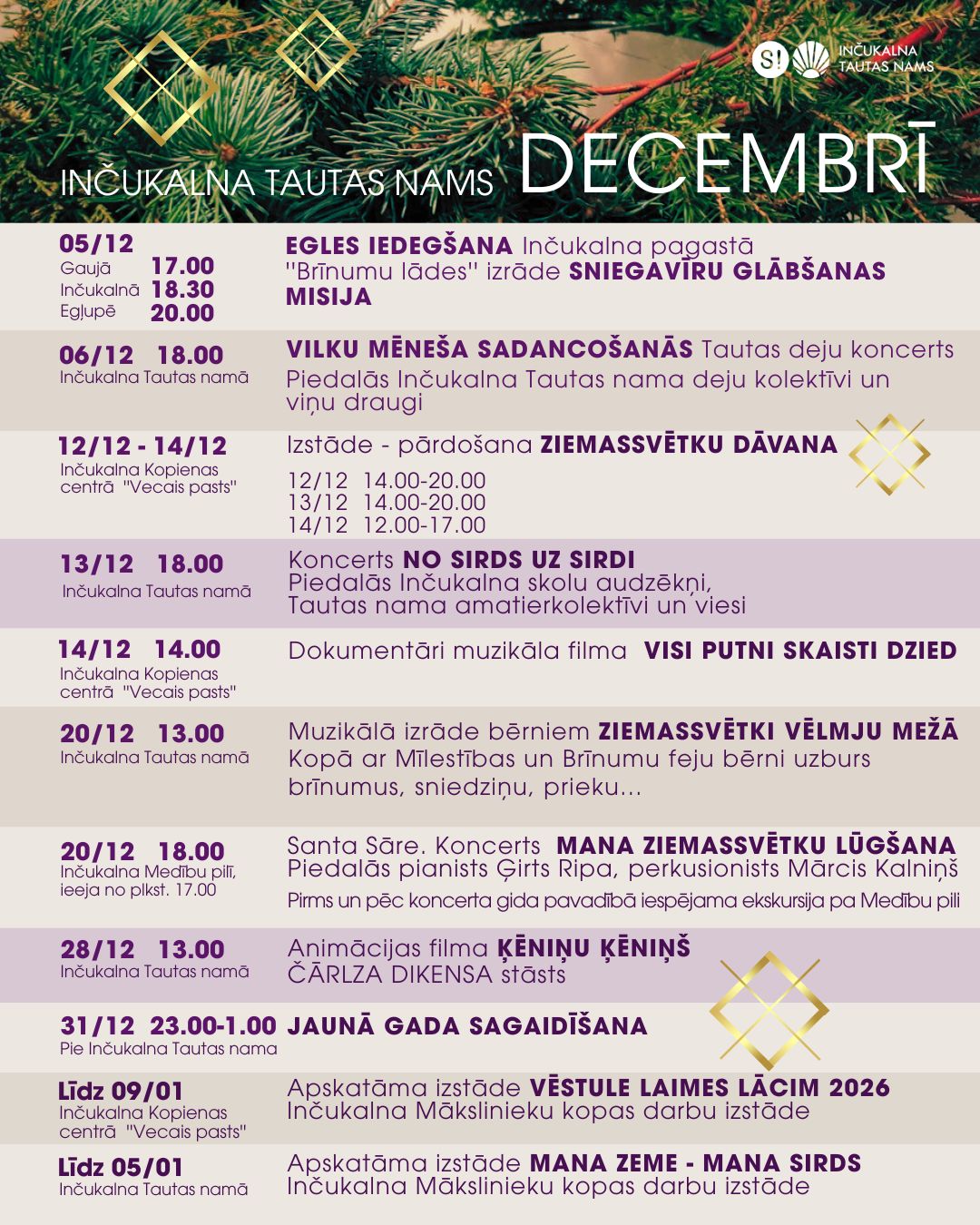 31.decembrī plkst.23.00-1.00 pie Inčukalna Tautas nama notiks jaunā gada sagaidīšanas pasākums.