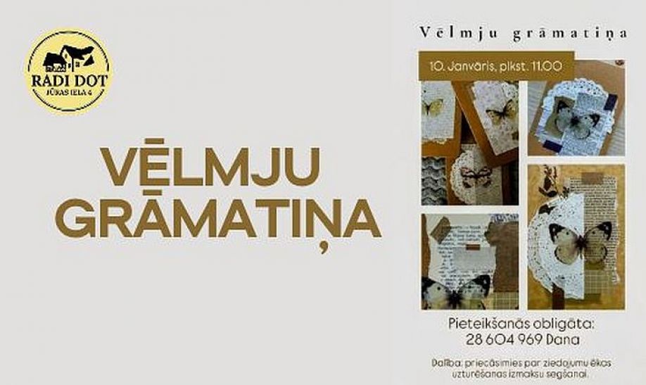 10.janvārī plkst.11.00 Koprades mājā “Radi dot” Carnikavā plānots pasākums “Vēlmju grāmatiņa”: “Šajā satikšanās reizē mēs apstāsimies, sajutīsim sevi, ieklausīsimies un ļausim vārdos iznākt tam, kas jau sen ir gatavs tapt sadzirdēts. Mēs uzliksim uz papīra īstas, dzīvas un izjustas vēlmes – tādas, kuras nejautā “kā vajag”, bet čukst “kā ir”,” tā rīkotāji.