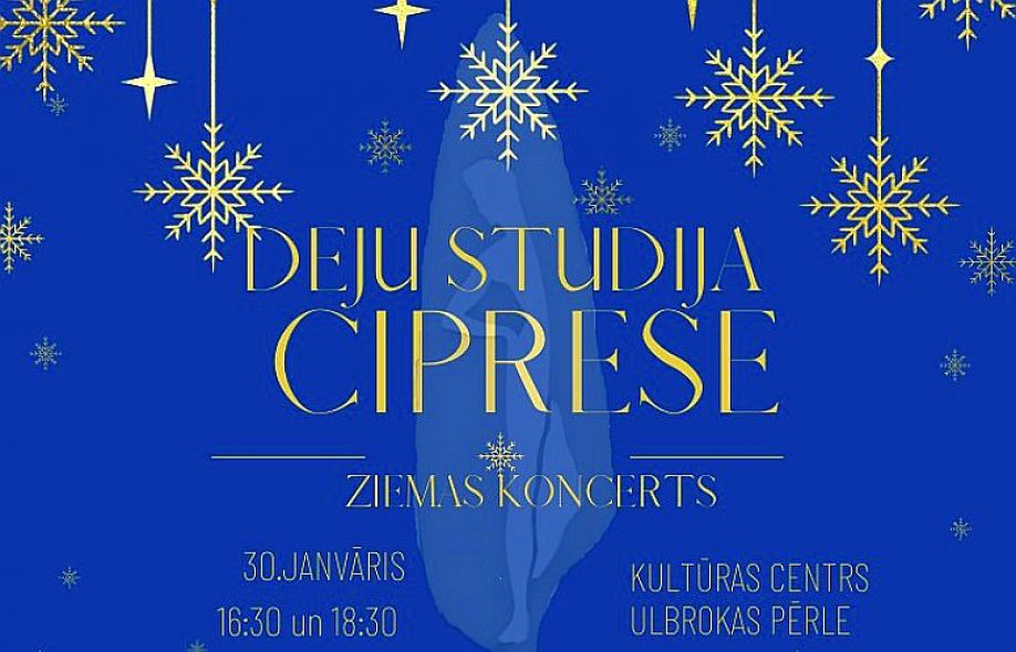 30.janvārī plkst.16.30 un 18.30 Kultūras centrā “Ulbrokas pērle norisināsies deju studijas “Ciprese” ziemas koncerti. Koncertos piedalās visi deju studijas dejotāji. Koncertu horeogrāfi: Patrīcija Danileiko un Ilona Petrovska.