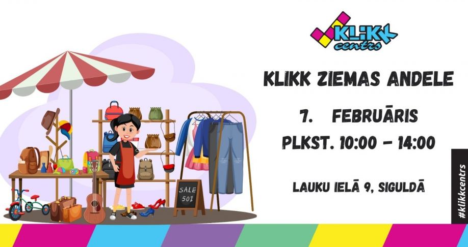 7.februārī plkst.10.00 Lauku ielā 9, Siguldā, notiks "Klikk" ziemas andele īstiem pērļu medniekiem un tirgotājiem — būs apģērbi, apavi un dažādas lietas.