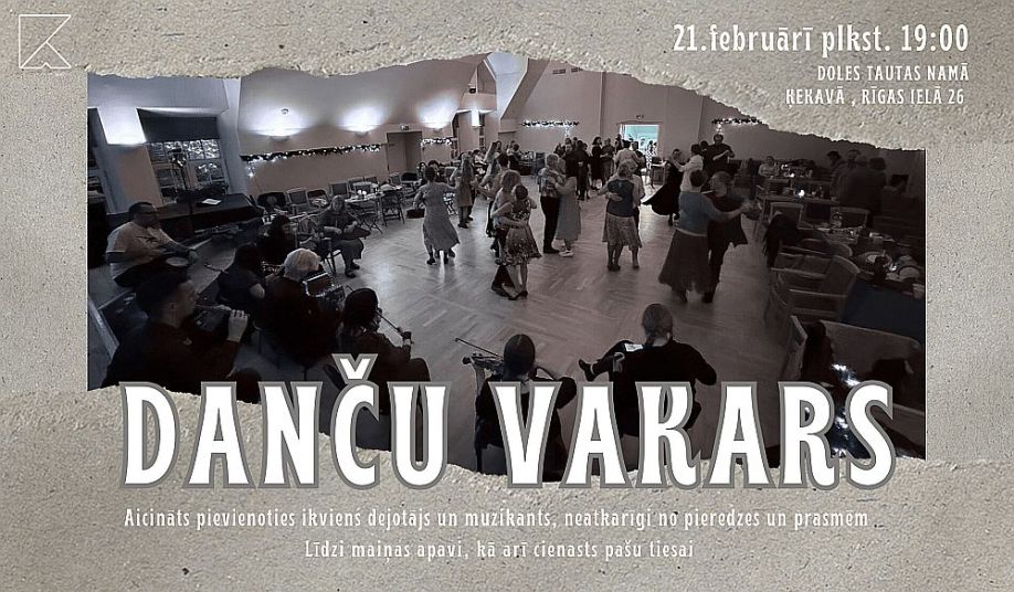 21.februārī plkst.19.00 Doles Tautas namā Ķekavā gaidāms danču vakars. Kā ierasts, spēlēs Raitis & draugi. Aicināts ikviens! Pašiem jāparūpējas par cienastu un maiņas apaviem. Aicināti pievienoties arī muzicēt pratēji.