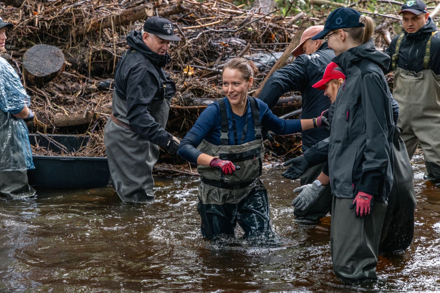 Koku sagāzums, kas bija izveidojis koku un atkritumu sastrēgumu, būtiski ierobežoja skaistas, straujas upes iespējas būt par nārsta vietām lašveidīgo sugām. Ne vienmēr koku sagāzums ir jāizvāc no upes, jo tā var būt arī vieta, kur dzīvot, augt un paslēpties, taču šoreiz tas bija kļuvis gan par “krājēju”, “savācēju”, gan par iespēju kādam paslēpt savus maluzvejas rīkus.