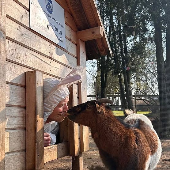 – Jā, pēc diviem gadiem radās doma pārcelt šo projekta ideju netālu – uz vietu, kur esam šobrīd. Saņēmu arī finanses kā labākais un ģimenēm draudzīgākais projekts. No tā sanāca uzcelt mājiņas un daļu sētu. Vienmēr esmu teicis, ka projekts ir paredzēts novada iedzīvotājiem, lai viņiem ir iespēja atnākt kopā ar bērniem un izglītoties un lai mazajiem būtu tieša saskare ar dzīvniekiem. Tas noteikti pa šiem gadiem ir radījis šo vienotības sajūtu. Cilvēkiem vieglāk uztverams ir nosaukums mini zoo, bet es uz to skatos kā uz mazu saimniecību, kurā ir parastie lauku dzīvnieki, ko aplūkot. Tad nu pilsētas bērniem ir iespēja iemācīties atšķirt kazu no aitas. Man te ir pundurkazas, punduraitas, pīles, vistas, truši, ponijs.