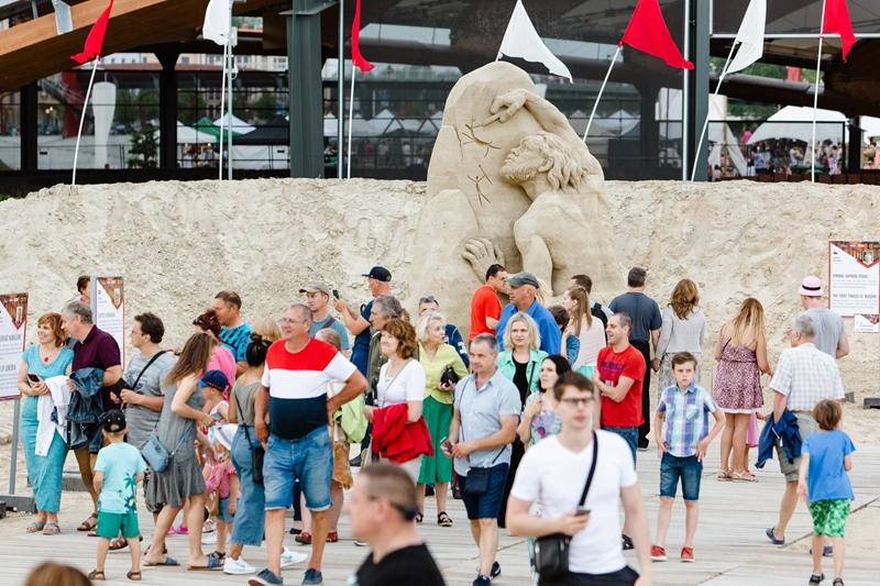 Foto: Jelgavā atklāts Baltijā lielākais Smilšu skulptūru festivāls