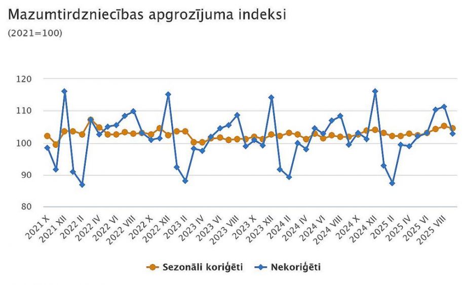 CSP: Septembrī mazumtirdzniecības apgrozījums pieaudzis par 2,6 %