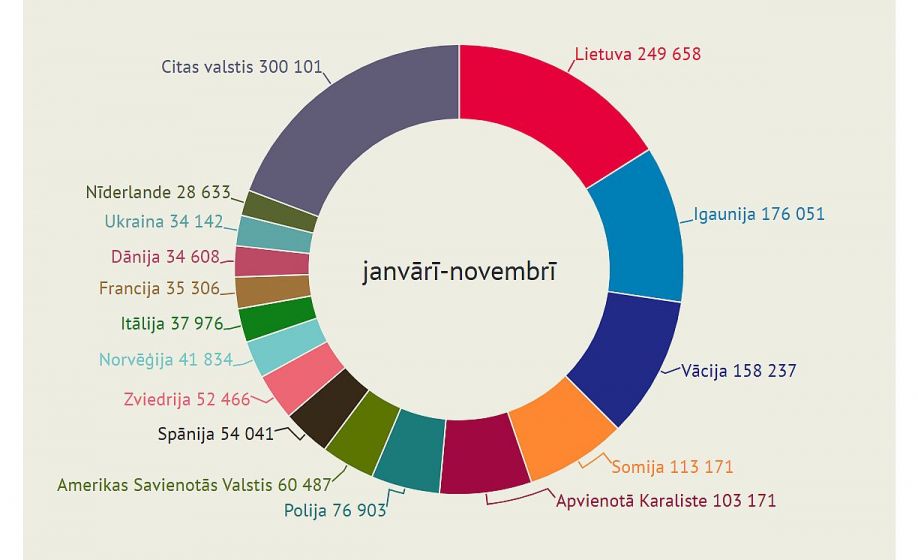 Latvijas tūrisma mītnēs viesu pavadīto nakšu skaits 11 mēnešos pieaudzis par 6,2%