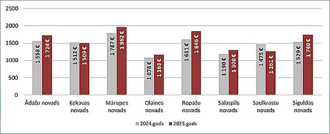 2025. gadā darījumu vidējā cena visvairāk palielinājās Siguldas novadā, kur tā pieauga par 14%.
