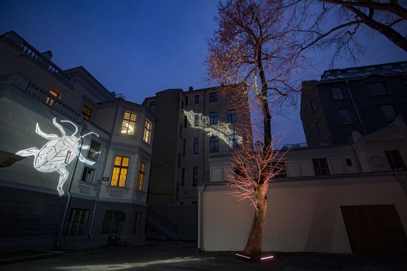 Latvijas Mākslas akadēmijas pagalmā vērojama 15 minūtes ilga dažādu mediju simfonija "Havets veje" jeb "Jūras ceļi", ko veidojusi starptautiska mākslinieku grupa "Tura Ya Moya". Tā specializējusies starpdisciplināru analogo instalāciju radīšanā. Jūras konteiners, no kura tiek projicēti attēli, pārveidots par mākslas un projekciju laboratoriju un ceļojis 3000 kilometru cauri Grenlandei un Skandināvijai, uzsūcot sevī gan mākslas studentu, gan profesionāļu darbus. "Tas ir ceļojošs konteinera projekts," apstiprina māksliniece Kārena Tastuma (Karen Thastum). "Tagad tas ieradies Rīgā, un mēs veidojam projekciju mākslu kopā ar Latvijas Mākslas akadēmijas studentiem. Ar katru jaunu vietu, ko šis projekts apmeklē, tiek rakstīta jauna nodaļa. Stāsts ir par jūras ceļiem no visiem skatpunktiem. Protams, man ir īpašs stils. Lēnas kustības attēli analogā veidā. Mums ir grafiski, melnbalti stopkadri. Ceturto dimensiju redzu vairāk abstrakti, kā māksliniecisku refleksiju par vēsturi, jūru un mērogiem - kas ir liels, kas mazs, kas patiesībā ir dimensija mūsu domāšanā."