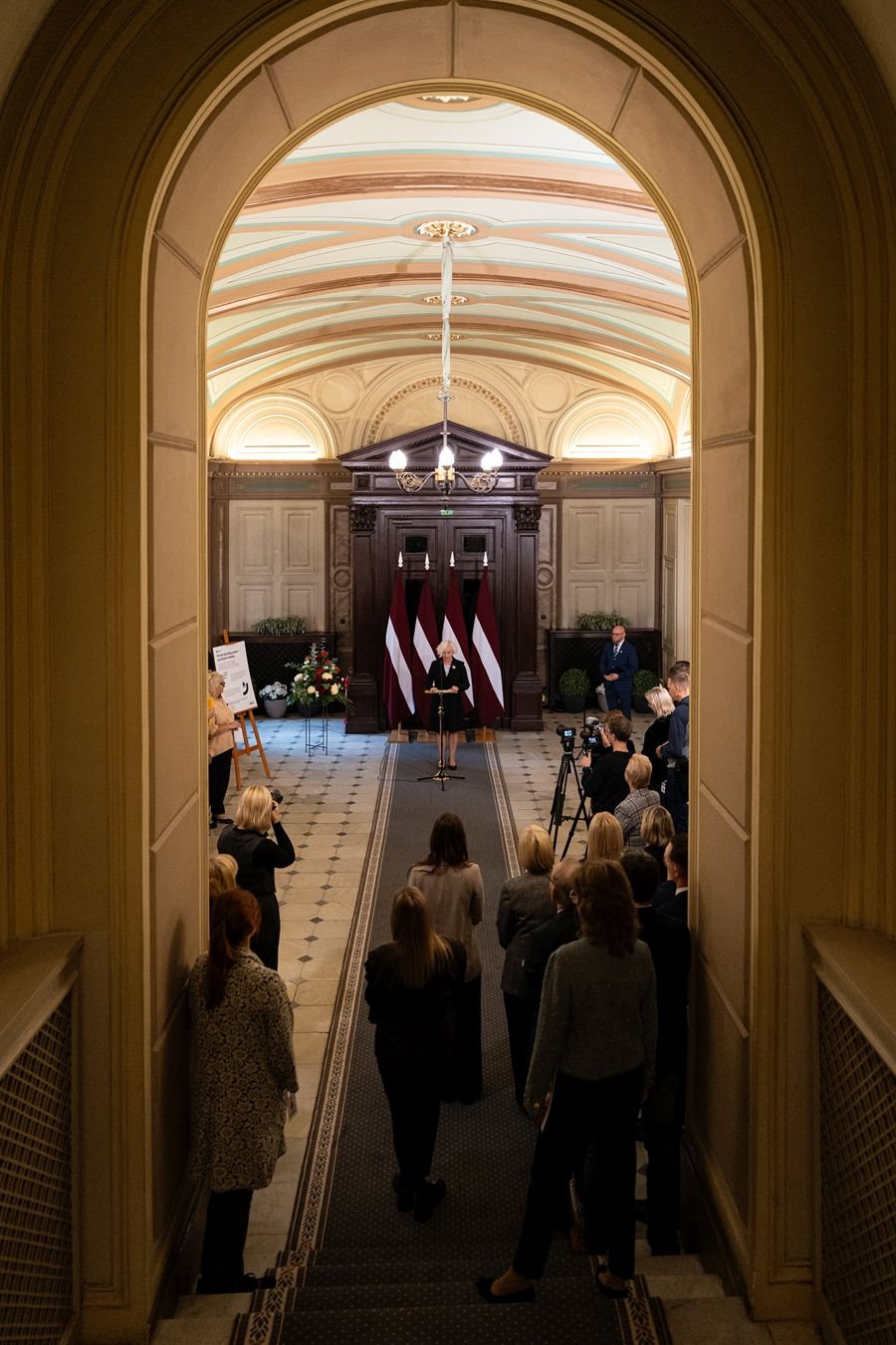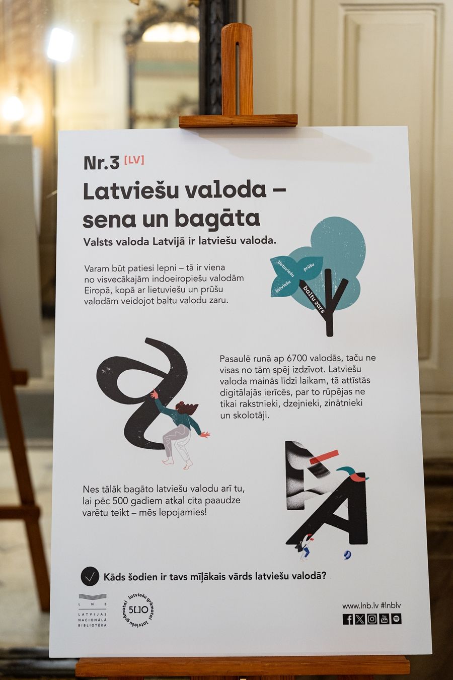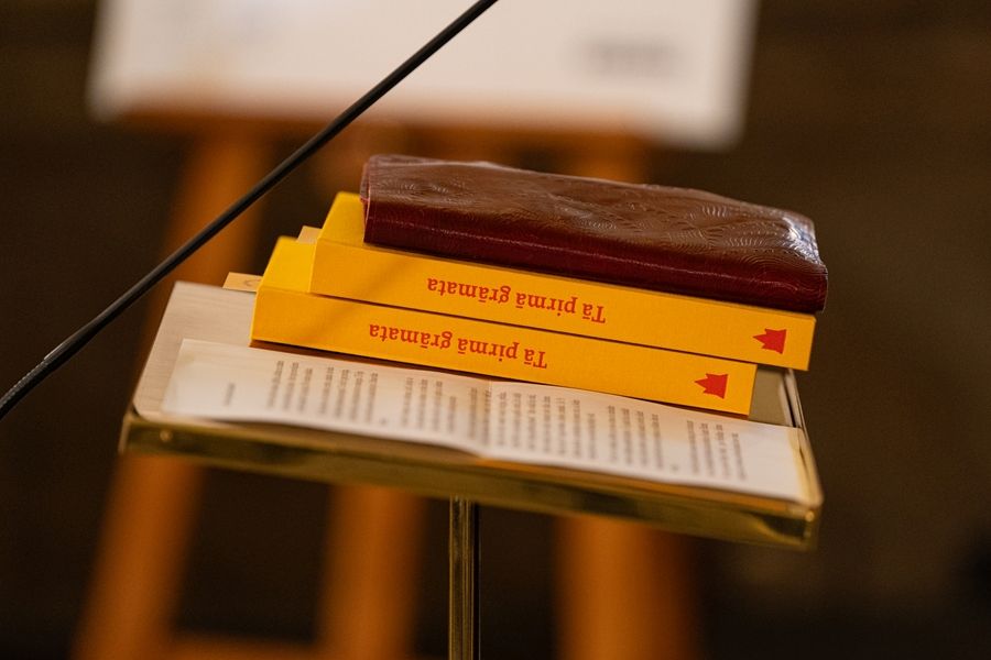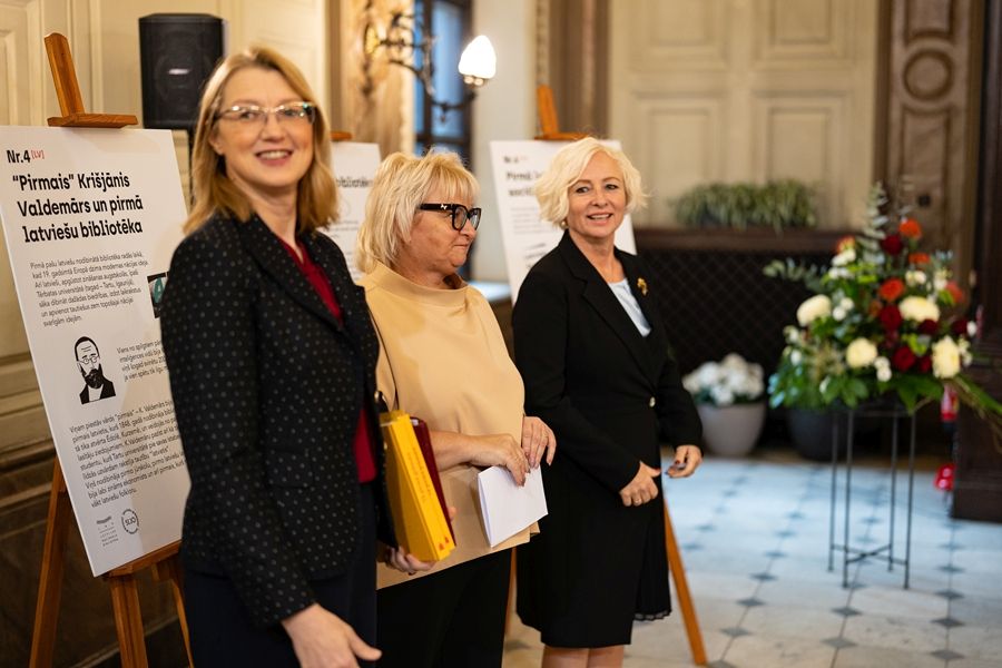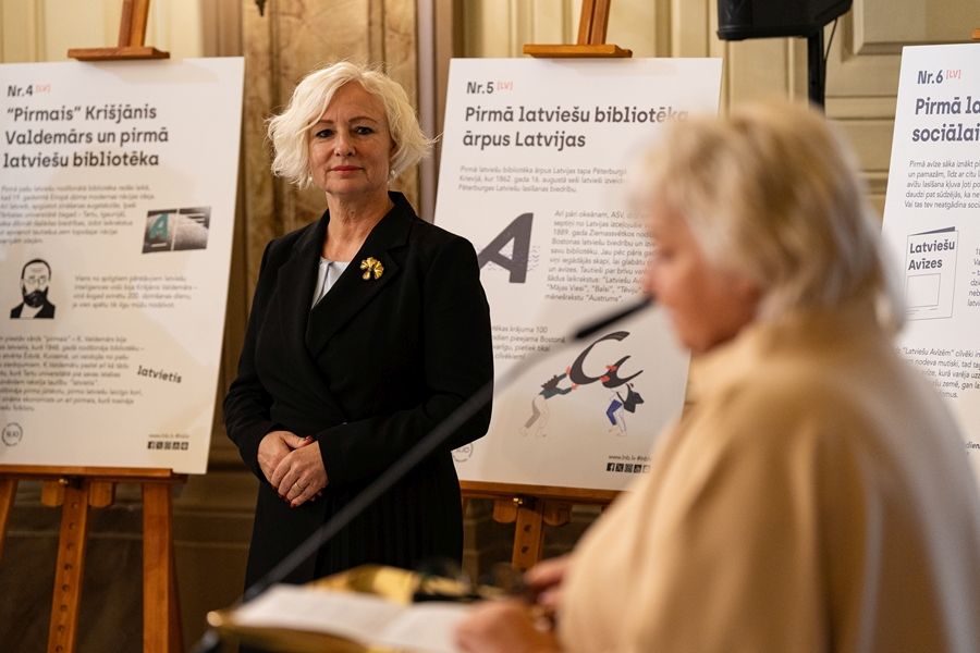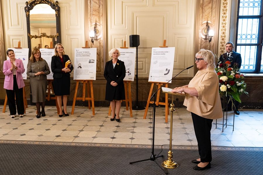 Atklājot izstādi, Saeimas priekšsēdētāja Daiga Mieriņa uzsvēra – valoda ir identitātes pamats. “Tā glabā vēsturi, ļauj domāt, just un redzēt vienā veselumā. Tieši valoda ir priekšnoteikums nacionālās kultūras veidošanai, kas pēcāk veido valsti. Tāpēc ir tik likumsakarīgi, ka grāmata ir valodas turpinājums,” pauda Saeimas priekšsēdētāja, atzīmējot, ka grāmata savieno pagātni un tagadni, ļaujot piedzīvot to, kas citkārt būtu zudis.