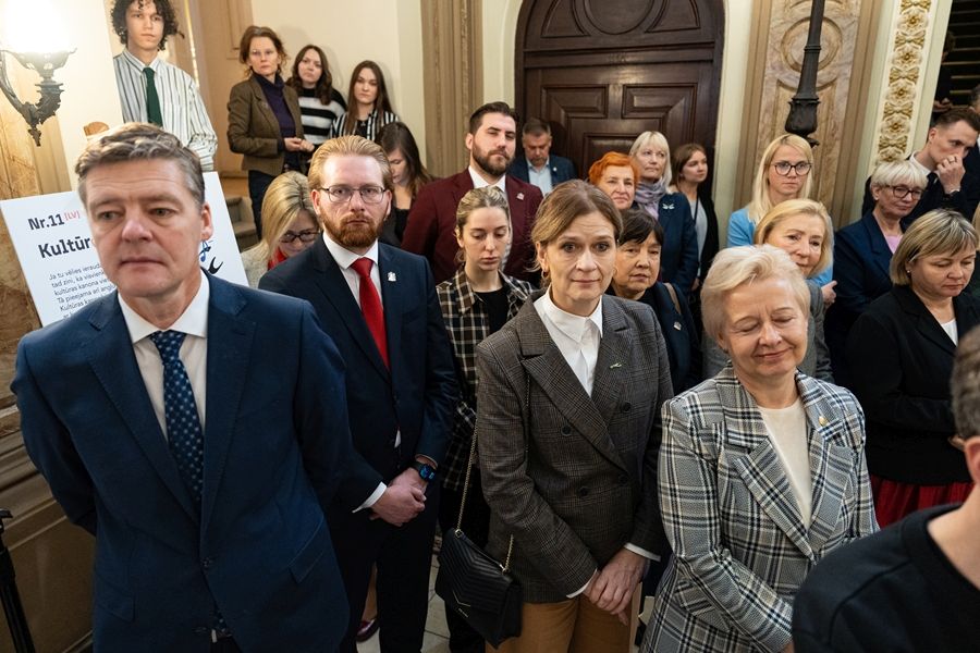 Foto: Saeimā atklāj pirmās latviešu valodā iespiestās grāmatas 500.gadadienai veltītu izstādi