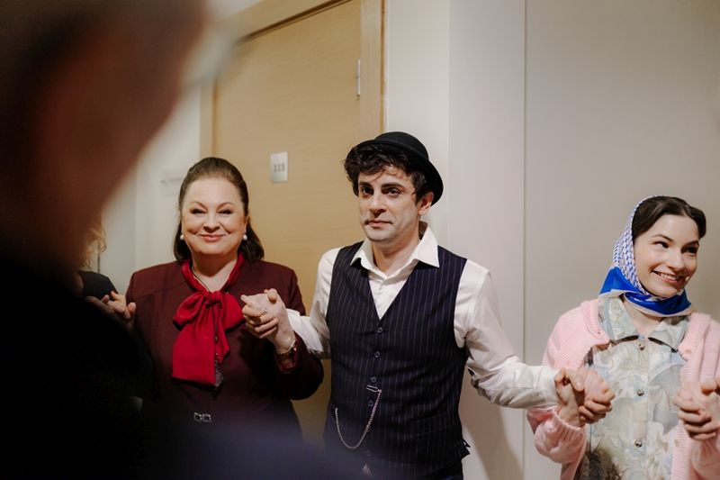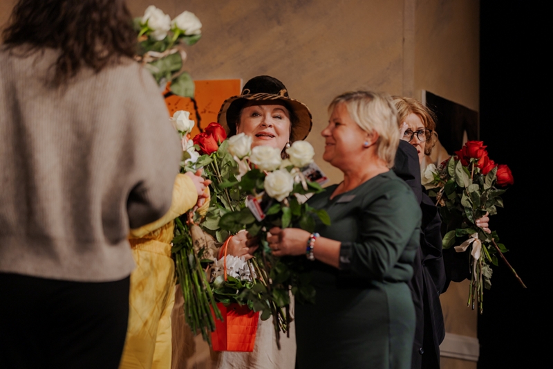Izrādes radošā komanda: scenogrāfe Aurika Feldmane, kostīmu mākslinieks Gatis Timofejevs un horeogrāfe Inga Krasovska.