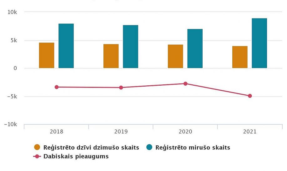 Pēc CSP datiem, samazinās arī dzimušo skaits. Šogad pirmajos trīs mēnešos reģistrēto jaundzimušo skaits – 4024 bērni – ir par nepilniem 6 % mazāks nekā 2020. gada attiecīgajā laika periodā.