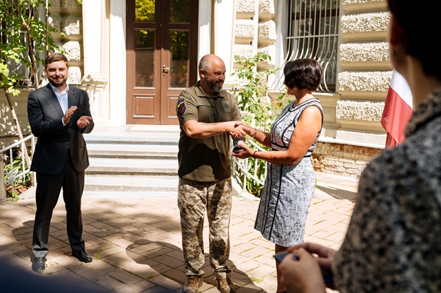 Šobrīd Latvijā ieradusies 72.atsevišķās mehanizētās "Melno Zaporižjeviešu" brigādes veterānu delegācija. Apbalvojumus pasniedza Ukrainas bruņoto spēku apakšpulkvedis un bijušais minētās brigādes štāba vadītāja vietnieks Sergijs Lisenko: "Vēlos teikt pateicības vārdus Latvijas tautai, organizācijām, uzņēmumiem, vēstniecībai - par jaudīgo atbalstu, ko saņemam un nebeidzam saņemt kopš pilna mēroga kara pirmajām dienām. Priekš mums karš sākās jau krietni agrāk - 2014.gadā. Bet ne visi to pamanīja. Ar Latvijas tautu par nožēlu esam tā īsteni iepazinušies tieši nelaimē. Un šī nelaime mūs ir vienojusi. Šobrīd mēs neesam vienkārši draugi, mēs esam brāļi - cīņubiedri. Mums ir ļoti spēcīga aizmugure! Ar tādu atbalstu - apjomīgu, jaudīgu un dāsnu, sniegtu no sirds, - mēs varam droši darīt savu darbu - atbrīvot Ukrainu no ienaidnieka ķetnām. Paldies visas manas tautas vārdā un mūsu brigādes vārdā. Tūkstoškārt pateicos!"