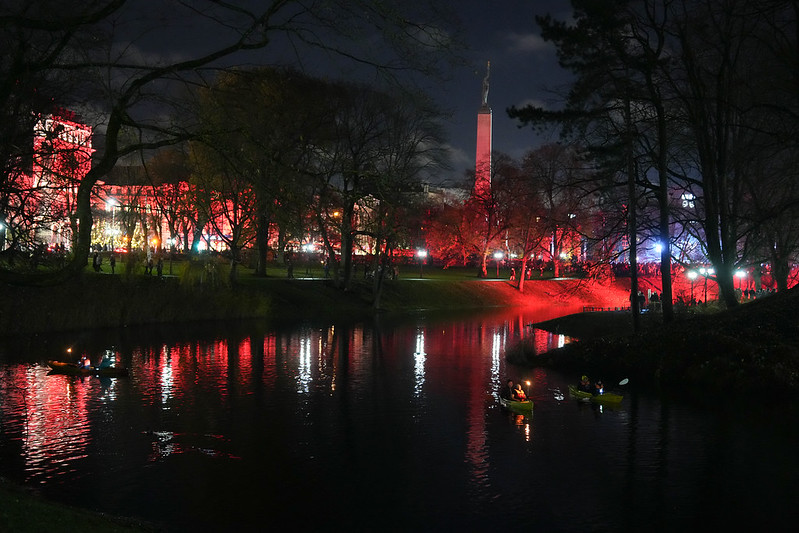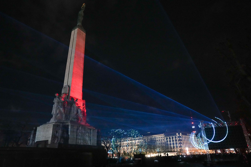 Pirmdien Rīgā ar dažādiem pasākumiem, koncertiem un lāzeru gaismas priekšnesumu tiek atzīmēta Latvijas valsts proklamēšanas 106.gadadiena.