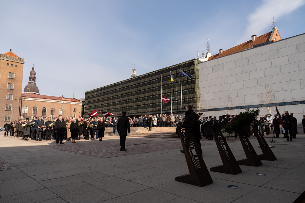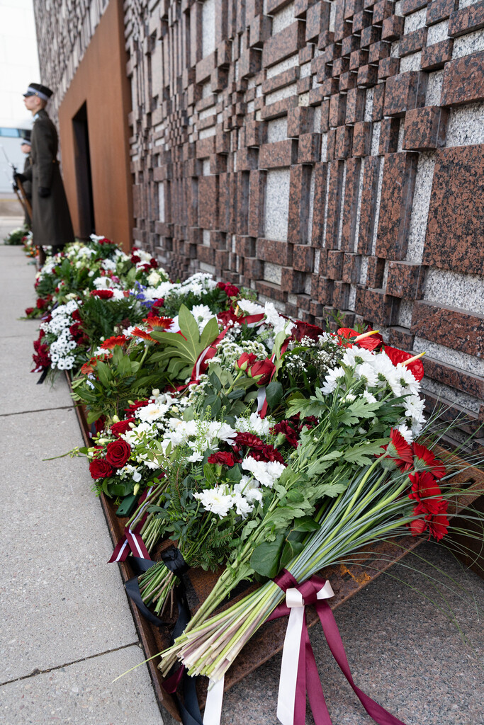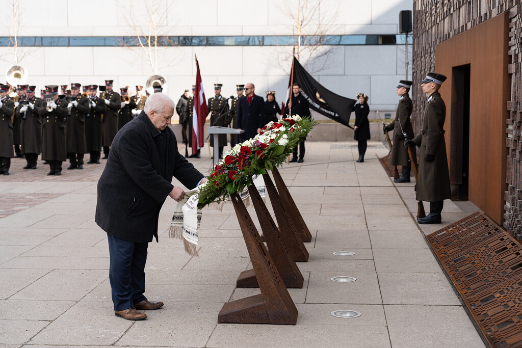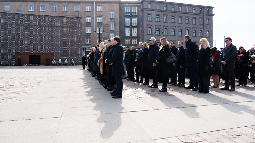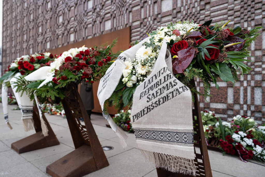 Kā novēroja aģentūra LETA, pie memoriāla "Vēstures taktīla" otrdien ziedus nolikt bija ieradušies Ministru prezidente Evika Siliņa (JV), Saeimas priekšsēdētāja Daiga Mieriņa (ZZS), vairāki Saeimas deputāti un ministri, kā arī Rīgas domes priekšsēdētājs Vilnis Ķirsis (JV) un viņa vietnieks Edvards Ratnieks (NA). Pasākumu novēroja vairāki garāmgājēji.