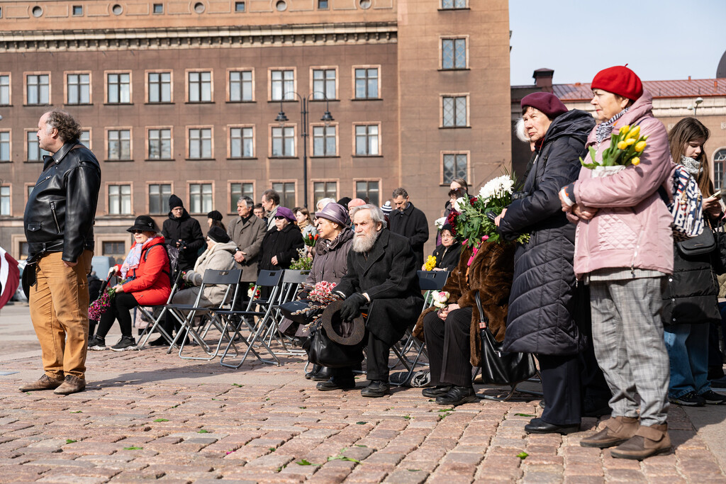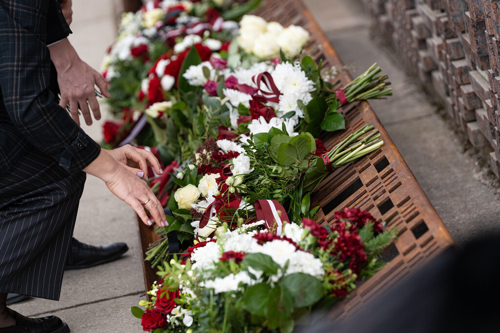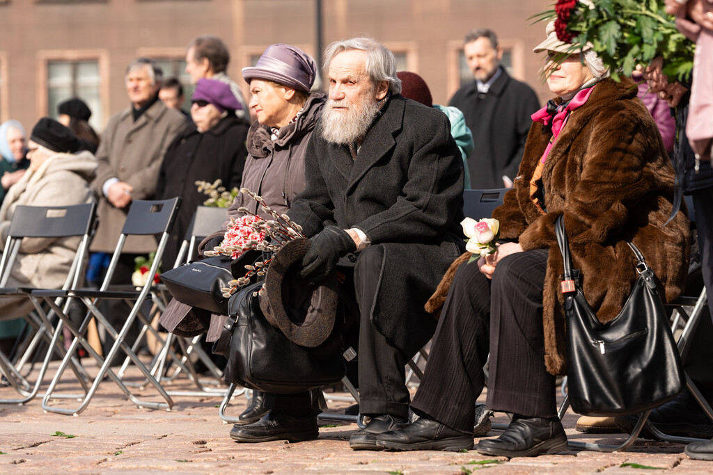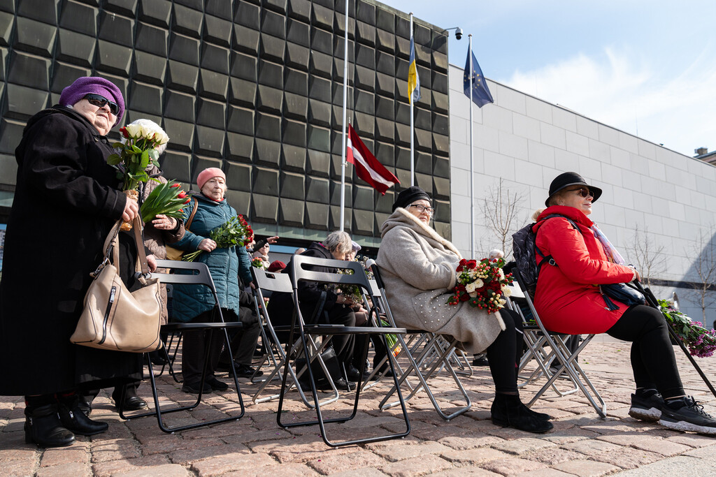 Kā novēroja aģentūra LETA, pie memoriāla "Vēstures taktīla" otrdien ziedus nolikt bija ieradušies Ministru prezidente Evika Siliņa (JV), Saeimas priekšsēdētāja Daiga Mieriņa (ZZS), vairāki Saeimas deputāti un ministri, kā arī Rīgas domes priekšsēdētājs Vilnis Ķirsis (JV) un viņa vietnieks Edvards Ratnieks (NA). Pasākumu novēroja vairāki garāmgājēji.