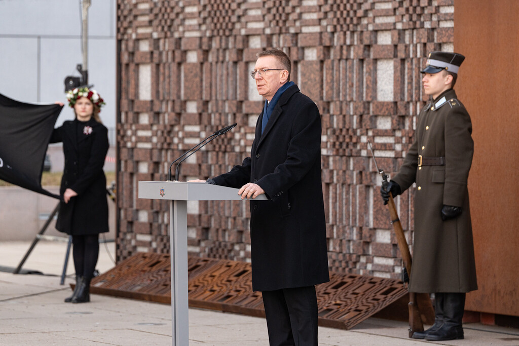 "Katru gadu mēs meklējam vārdus, kā vēl sev atgādināt par mūsu pagātni, par mūsu vēsturi. Kā vēl pateikt sabiedrībai un pasaulei, ka tas, kas notika 1941.gadā un 1949.gadā, ir tas, ko nevēlamies piedzīvot nekad," savā uzrunā sacīja Valsts prezidents Edgars Rinkēvičs.