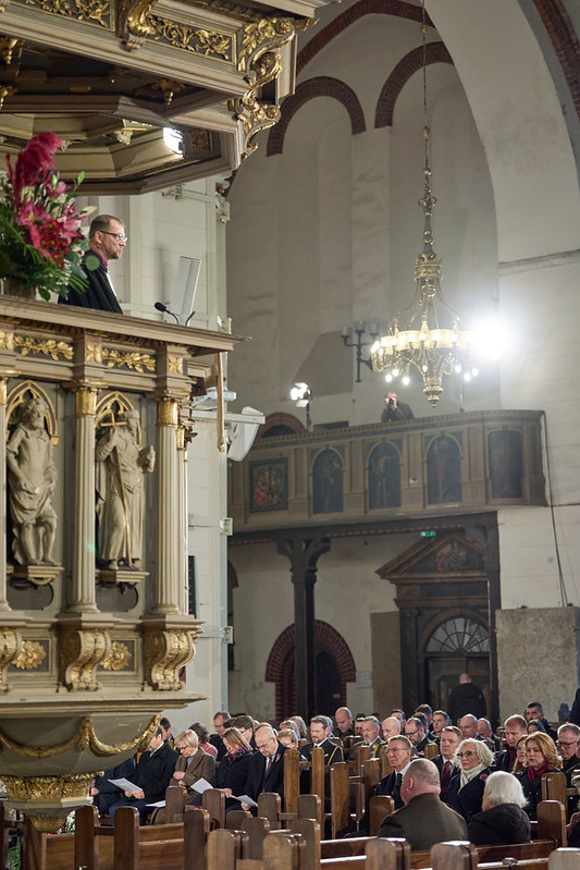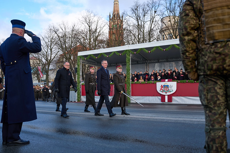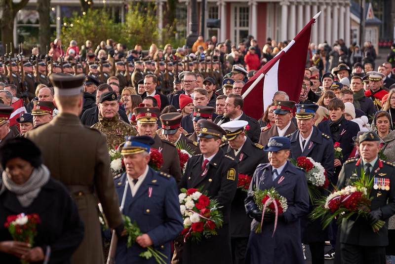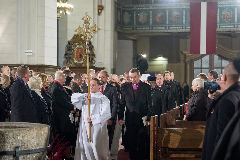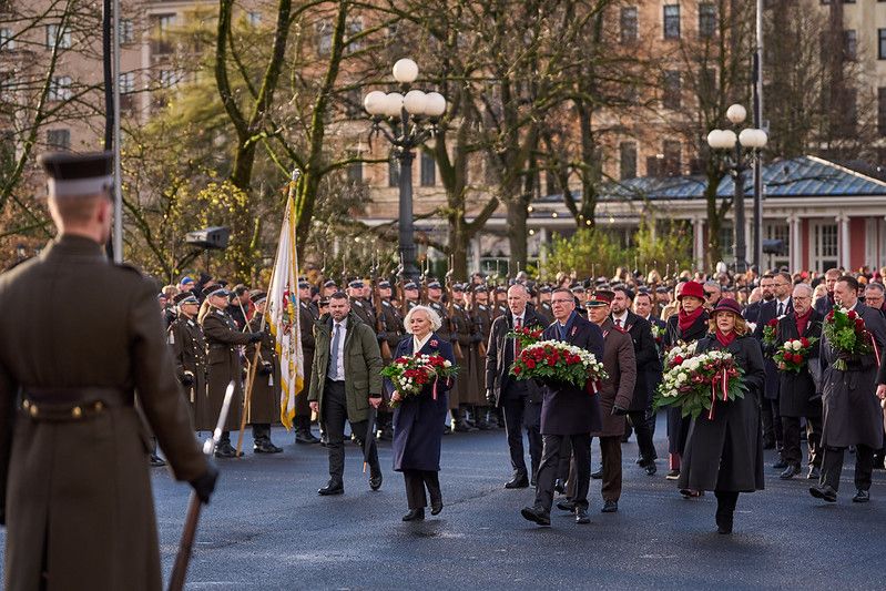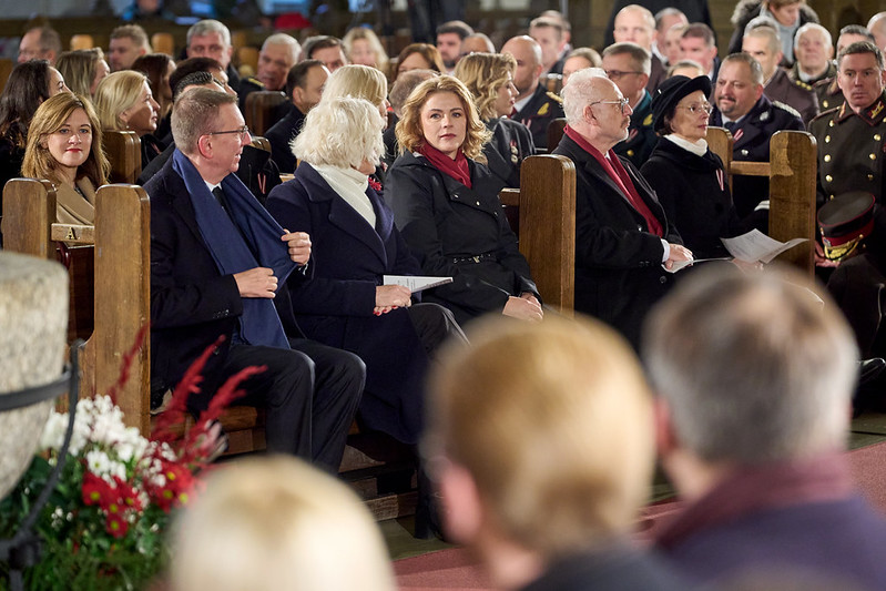Svinot Latvijas Republikas Proklamēšanas 107.gadadienu, Rīgas Domā rītapusē notika ekumeniskais dievkalpojums, bet pie Brīvības pieminekļa notika svinīgā ziedu nolikšanas ceremonija.