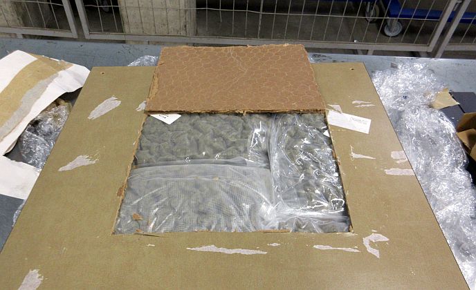 Kriminālprocess par narkotisko vielu pārvietošanu tika uzsākts pēc tam, kad no Taizemes pa pastu sūtītā galdā tika atklāts speciāli izveidots slēpnis, bet tajā – četri iepakojumi ar zaļganbrūnas krāsas augu izcelsmes vielu. VID Muitas pārvaldes amatpersonas ar rentgena iekārtu pārbaudīja deklarēto preci – galdu izjauktā veidā, un konstatēja, ka galda virsmā, iespējams, ir izveidots slēpnis. Noņemot galda virsmai piestiprināto montāžas instrukciju, zem tās atklājās kvadrātveida griezums. Atverot griezuma vietu, tika atrasti četri caurspīdīgi polimēra iepakojumi ar zaļganbrūnas krāsas augu izcelsmes vielu.