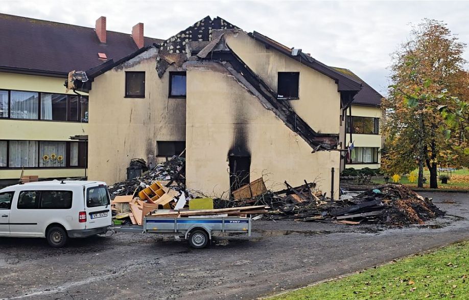 Ugunsgrēka postījumi pirmsskolas izglītības iestādē “Bitīte”. Foto – saulkrasti.lv