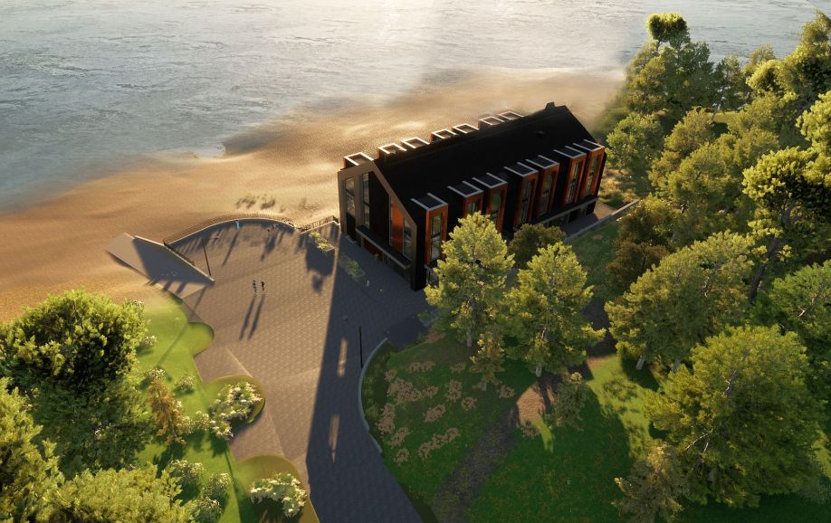 Ēku no vienas puses ieskauj zeltaina jūras pludmale, bet no otras – mežs. Plānoto projektu novērtēs tie, kas meklē dabas tuvumu, atpūšoties no lielpilsētas burzmas, jo ēkā ir paredzēti ne tikai apartamenti viesu izmitināšanai, bet arī kafejnīca, SPA zona, pirtis, atpūtas zāle nelielu svinību organizēšanai.