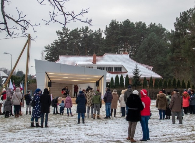 2. decembrī kalngalieši Putnu parkā pulcējās diviem priecīgiem notikumiem – lai Pirmajā adventē parkā iedegtu eglīti un uz jaunās parka estrādes atklāšanu, kas ir biedrības “Kalngalieši” un pašvaldības dāvana ciema iedzīvotājiem Latvijas valsts simtgadē.