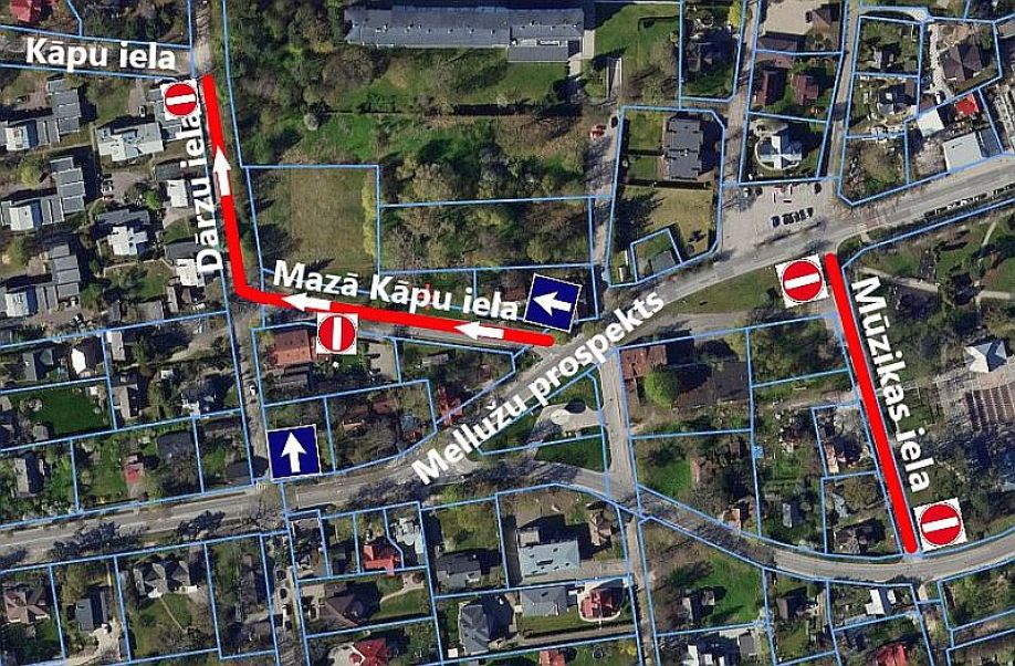 - slēgta satiksme Mūzikas ielā, garantējot piekļuvi īpašumiem;