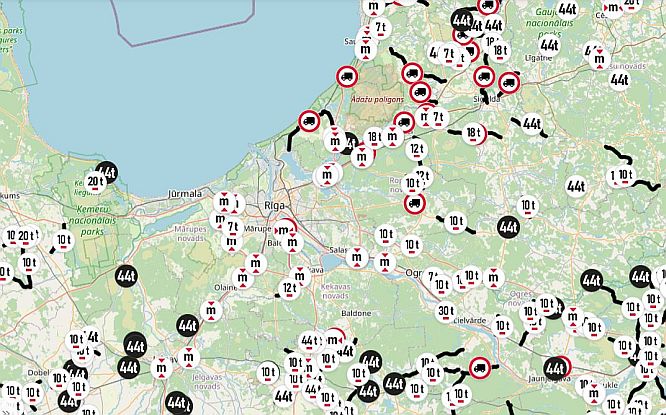 Informācija par autoceļiem, kuros noteikti transportlīdzekļu masas ierobežojumi, atrodama kartē VSIA “Latvijas Valsts ceļi” mājaslapā.
