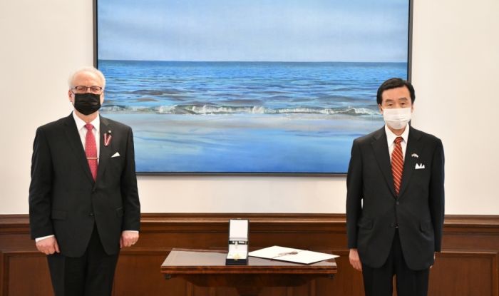 Valsts prezidents pasniedz Triju Zvaigžņu ordeni Japānas vēstniekam Latvijā