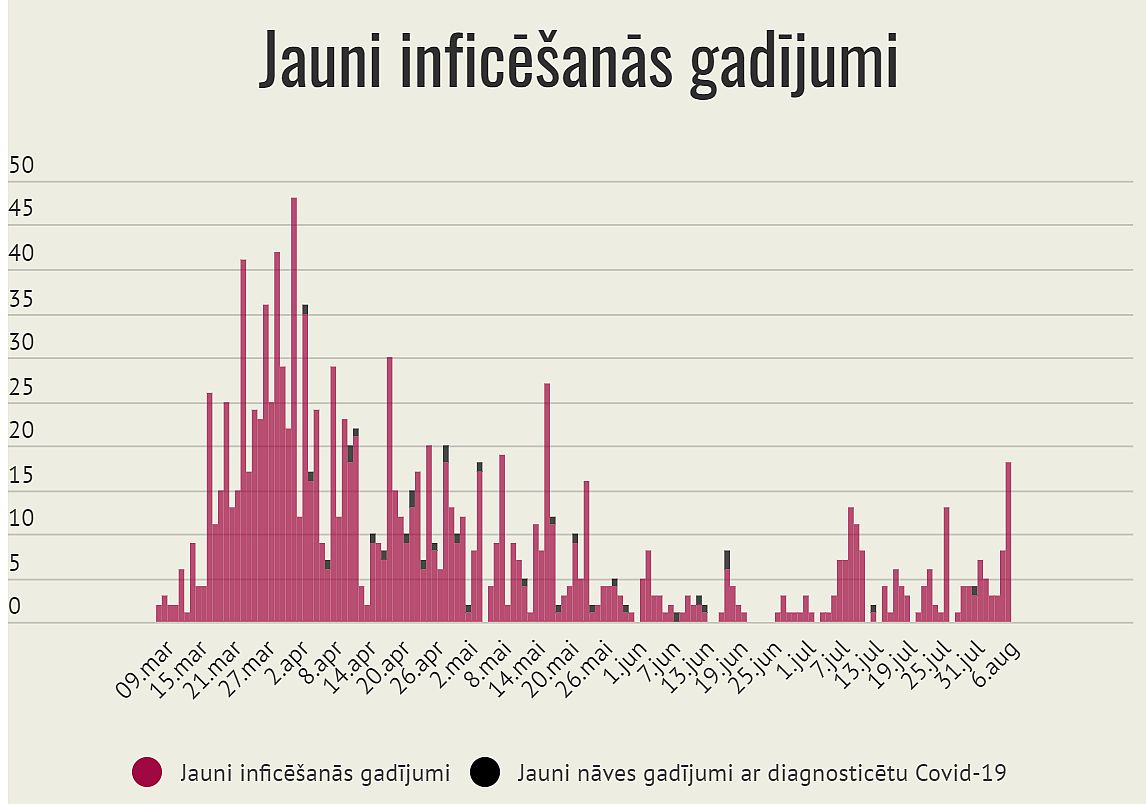 Trešdien reģistrēti 18 jauni Covid-19 inficēšanās gadījumi, deviņi saslimušie saistīti ar uzliesmojumu Murjāņu sporta ģimnāzijā