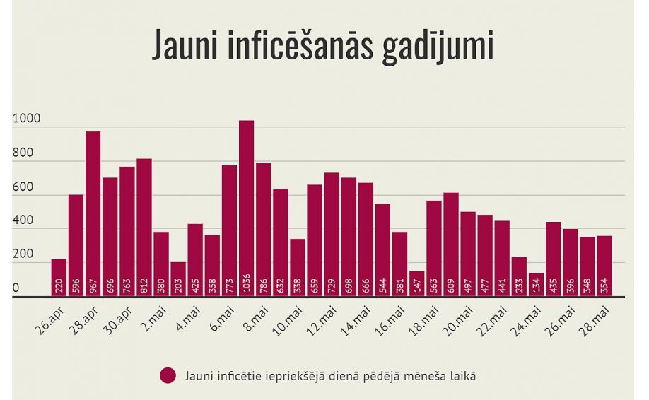Aizvadītās diennakts laikā saņemta informācija par 11 ar Covid-19 inficētiem mirušiem cilvēkiem. Divas personas bijušas vecuma grupā no 60 līdz 70 gadiem, trīs grupā no 70 līdz 80 gadiem, trīs grupā no 80 līdz 90 gadiem un trīs vecuma grupā no 90 līdz 99 gadiem. Kopējais no slimības mirušo cilvēku skaits sasniedzis 2370.