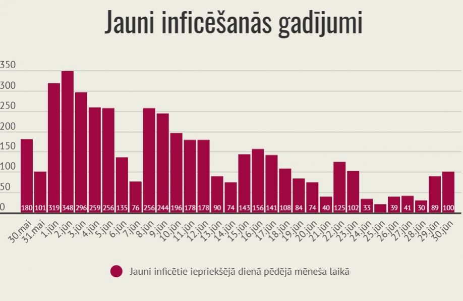Otrdien Latvijā konstatēti 100 jauni Covid-19 inficēšanās gadījumi; saņemtas ziņas par pieciem mirušajiem