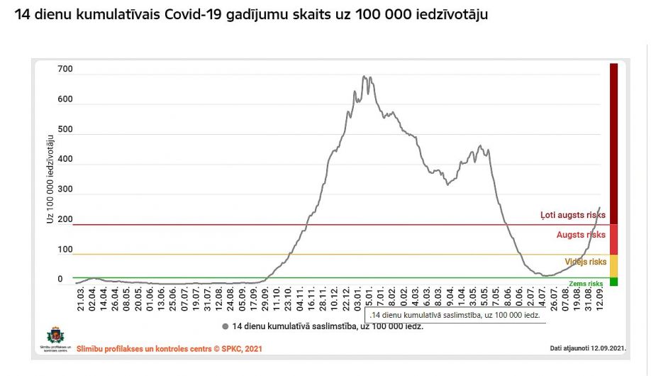 Izmeklējumu pozitīvo gadījumu īpatsvars pret testētajiem bijis 3,8%. 14 dienu kumulatīvais rādītājs uz 100 000 iedzīvotāju pakāpies uz 257,4 (piektdien – 247).