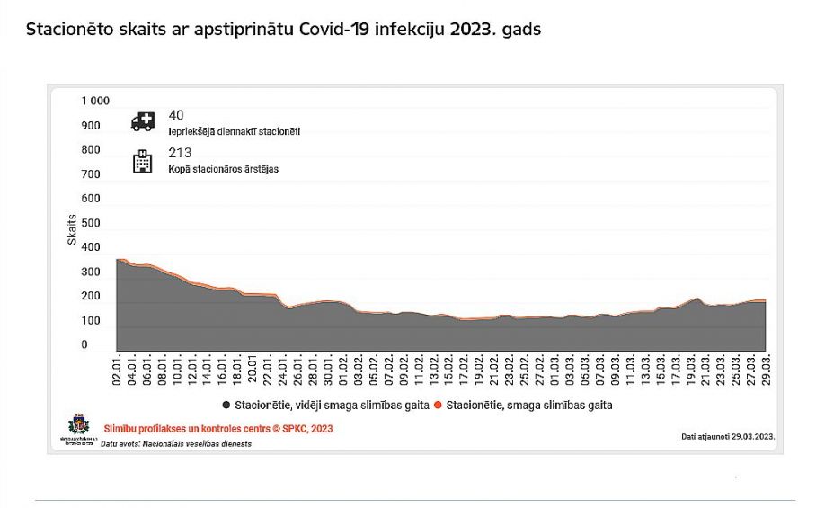 Salīdzinājumā ar iepriekšējo nedēļu, pacientu skaits stacionāros ar apstiprinātu Covid-19 infekciju samazinājies par 15,9%, vēsta SPKC.