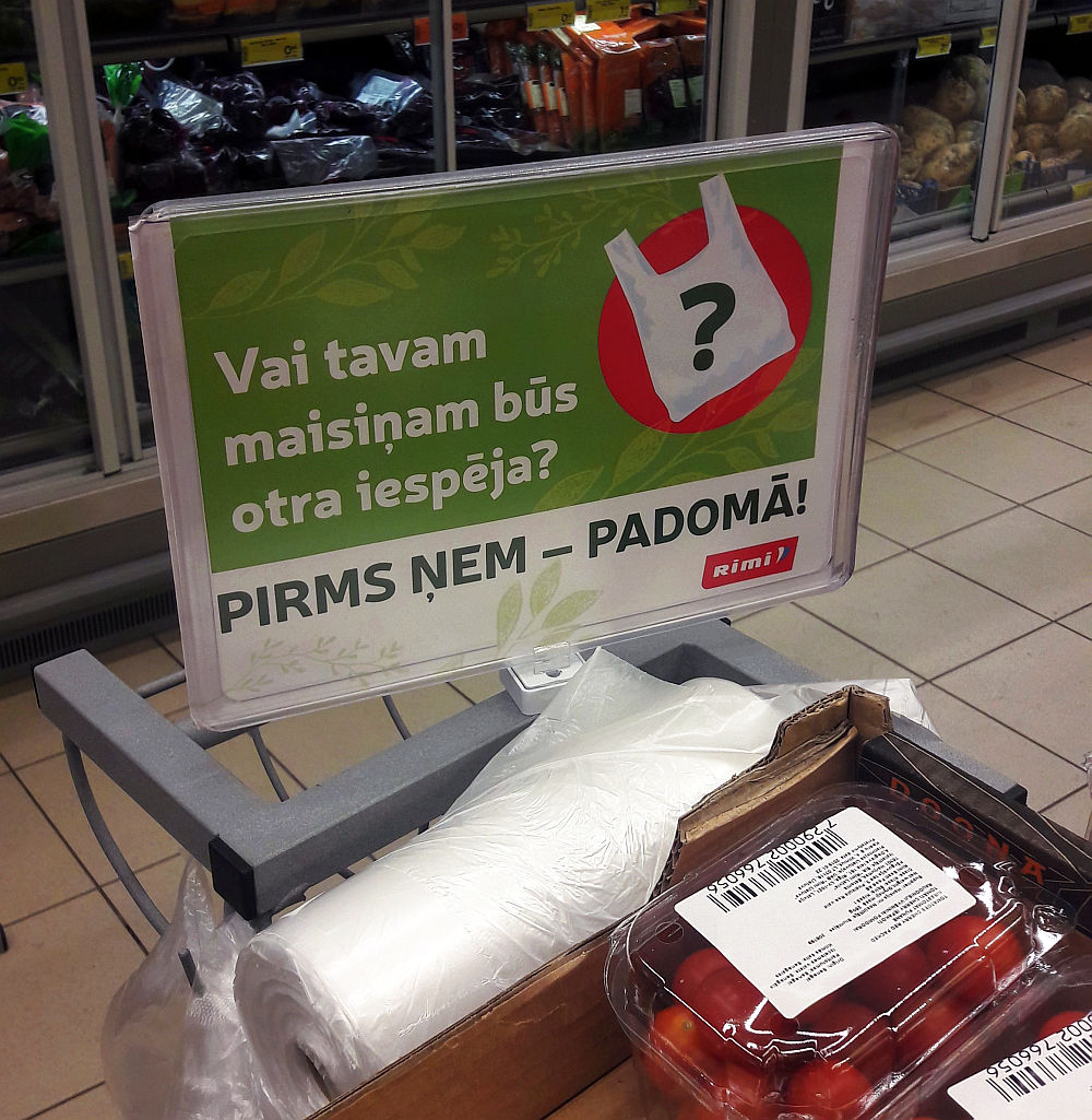 Pirms nedēļas iegriezos kādā no lielveikalu ķēdes “Rimi” veikaliem. Staigājot un meklējot nepieciešamās lietas, mani un citus veikala apmeklētājus pārsteidza balss skaļrunī: “Uzmanību, cienījamie veikala apmeklētāji!” Pēc šīs uzrunas automātiski ar acīm jau meklēju, kur ir tuvākā izeja, ja nu tūlīt tiek izziņota trauksme, visiem liekot evakuēties no veikala, tomēr tik traki nebija – pircēji tika aicināti izvērtēt, vai tiešām ir vajadzīgs bezmaksas plastmasas maisiņš un varbūt var iztikt bez tā. Arī citos veikalu tīklos kopš gada sākuma vērojama rosība attiecībā uz videi draudzīgāka iepakojuma izmantošanu un plastmasas maisiņu patēriņa samazināšanu.