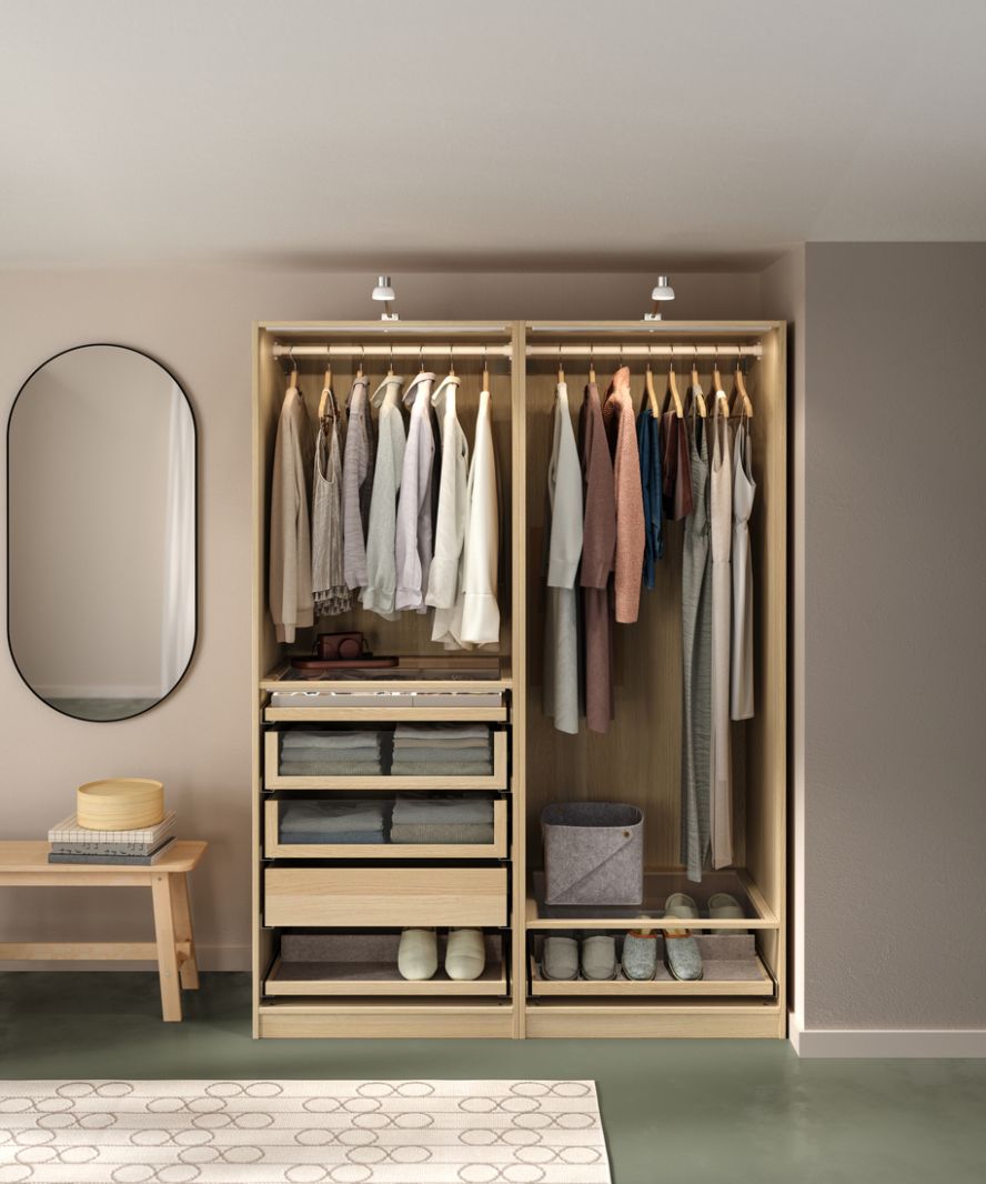 Interjera dizainers dod praktisku padomu – pirms pārliec drēbes jaunajā skapī, atbrīvojies no tām, ko vairs nevalkā. Pēc tam atlasi drēbes, ko velc visbiežāk.