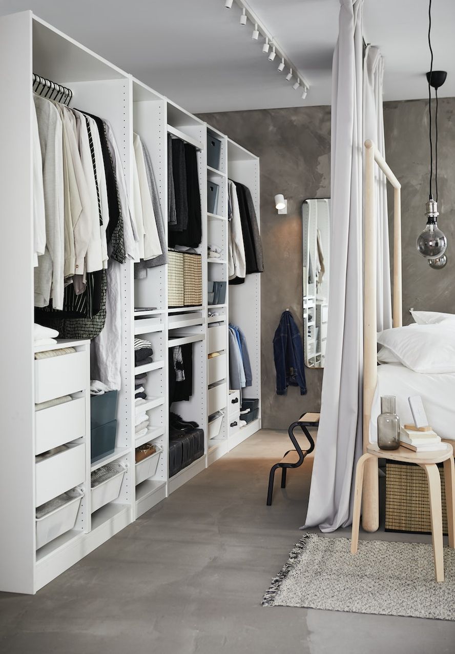 Apģērbs var kalpot kā interjera elements. Ja esi šāda stila piekritējs, vērts izvēlēties vaļēju skapi bez durvīm. Vaļēja skapju sistēma ir perfekta garderobes telpai. Vēl viens šāda risinājuma ieguvums ir iespēja sadalīt izdevumus. Tā kā skapis sastāv no dažādām detaļām, durvis un citas daļas var pievienot laika gaitā. Turklāt tā ir iespēja skaisti izvietot apģērbu un aksesuārus.