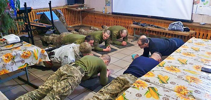 Ar karavīriem Ukrainā es vienmēr cenšos komunicēt jokojot… Viņi zina manas stiprās puses, piemēram, ka es “plankā” varu nostāvēt vairāk nekā piecdesmit minūtes. Varu tikai Dievam pateikties, ka ir veselība un gudrība.