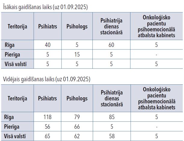 Jautājot par rindām uz valsts apmaksātu konsultāciju pie psihologiem un psihiatriem Pierīgā, Rīgā un valstī kopumā, Veselības ministrija sniedza šādus datus: